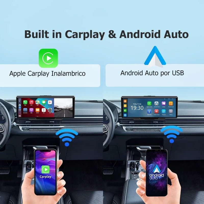 CarPlayNow е съвместим с Carplay и Android Auto и поддържа Bluetooth 5.1/Siri/Google Maps/Музика/HD1080P видео/телефонни разговори и т.н. Просто свържете вашия смартфон чрез Bluetooth и Wi-Fi или USB за достъп до навигация с карти, препращане към обаждания и слушане на музика , фокусирайте се върху пътя и шофирайте по-удобно и безопасно
