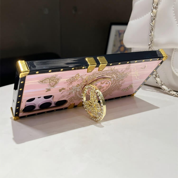 ❤ 【ПОСТАВКА ЗА ПЕПЕРУДИ】 Сладката, жива и очарователна стойка за пръстени с пеперуди, вградена в задния капак на телефона, може да се използва за видео разговори или гледане на програми вертикално и хоризонтално, като напълно освобождава ръцете ви