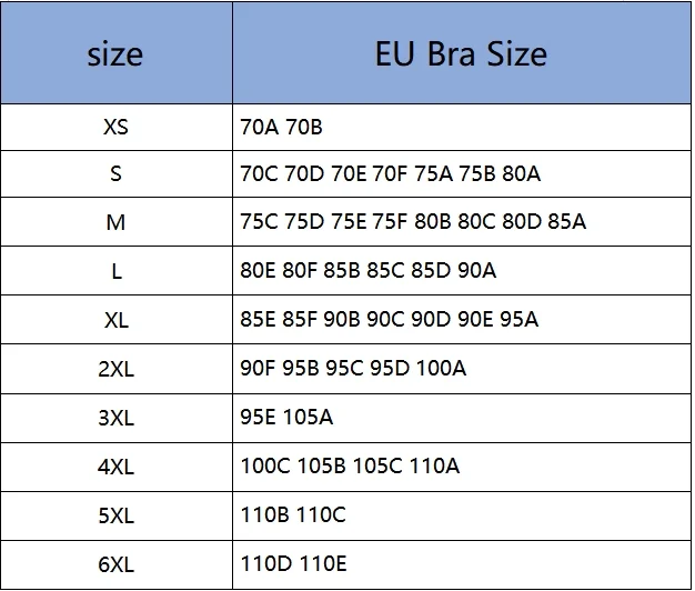 За размери 85E/F, 90B/C, 95D и 100A горната част на гърдите е 95-105 см, долната част е 85 см.